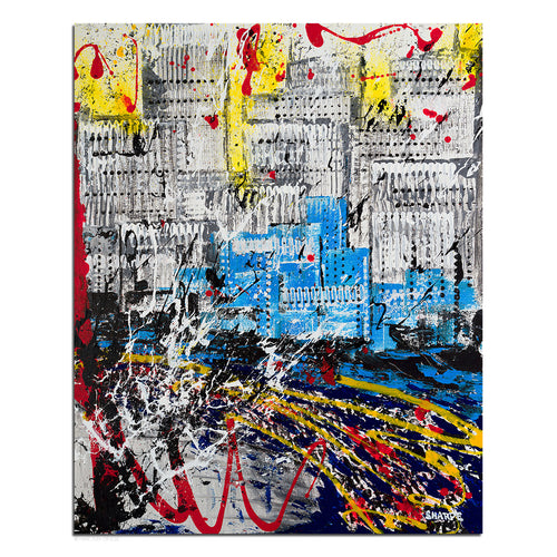 One of a kind hand-painted original abstract artwork by Montreal artist Dougie Sharpe using acrylics on cotton canvas.